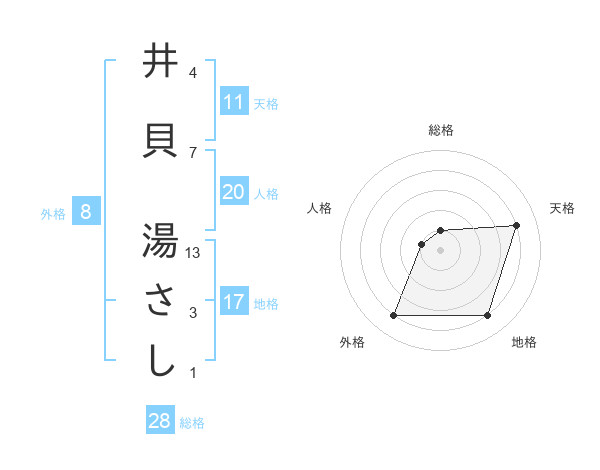 井貝 湯さしさんを姓名の画数から五運を鑑定