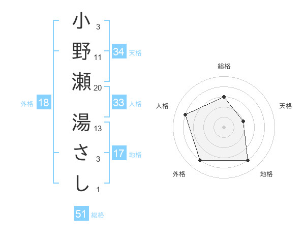 小野瀬 湯さしさんの名前の鑑定結果は!