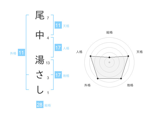 尾中 湯さしさんを姓名の画数から五運を鑑定