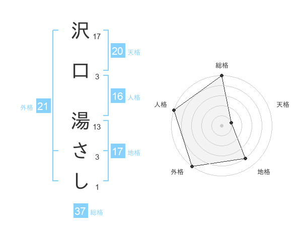 沢口 湯さしさんを姓名の画数から五運を鑑定