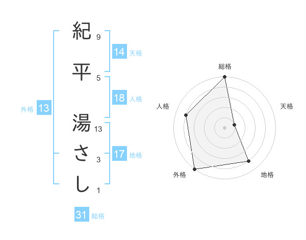 紀平 湯さしさんを姓名の画数から五運を鑑定