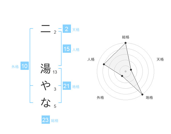 二 湯やなさんの総格は23画の5点!