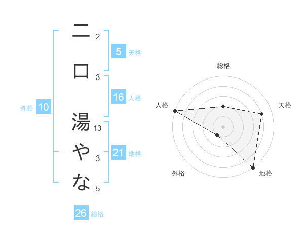 二口 湯やなさんを姓名の画数から五運を鑑定