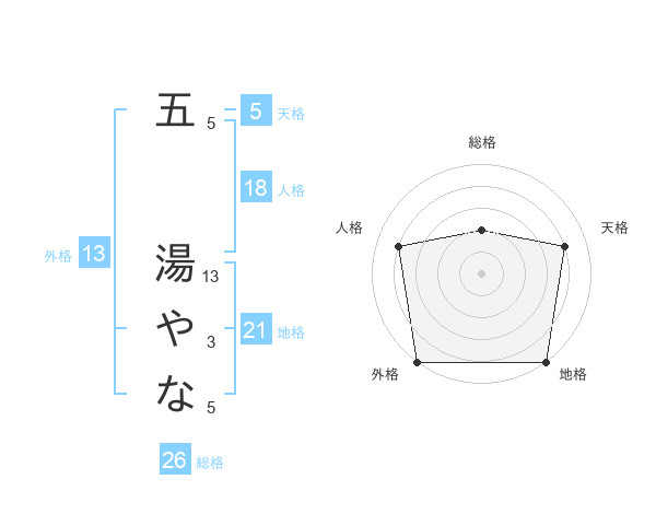 五 湯やなさんの総格は26画の2点!