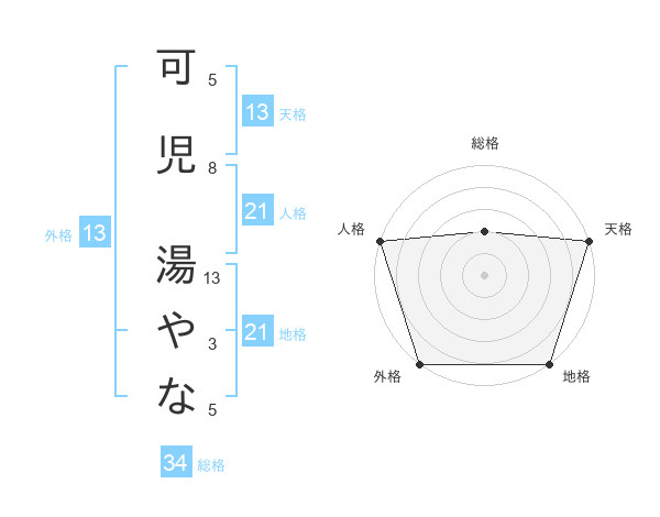 可児 湯やなさんの天格は13画の5点!