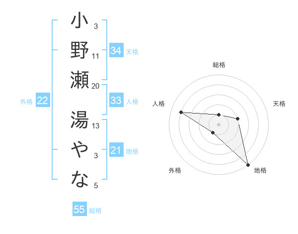 小野瀬 湯やなさんの総格は55画の1点!