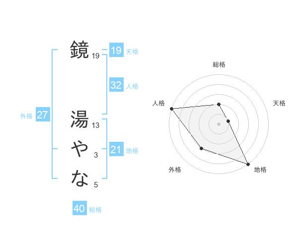 鏡 湯やなさんを姓名の画数から五運を鑑定