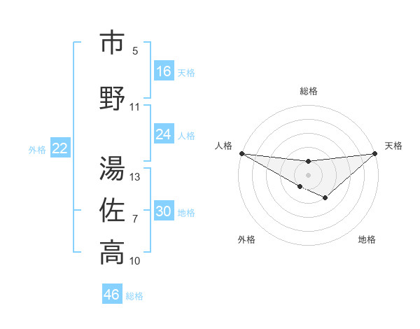 市野 湯佐高さんを姓名の画数から五運を鑑定