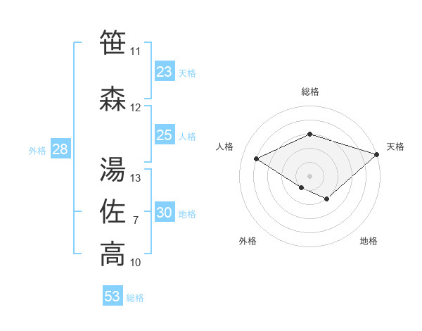 笹森 湯佐高さんを姓名の画数から五運を鑑定