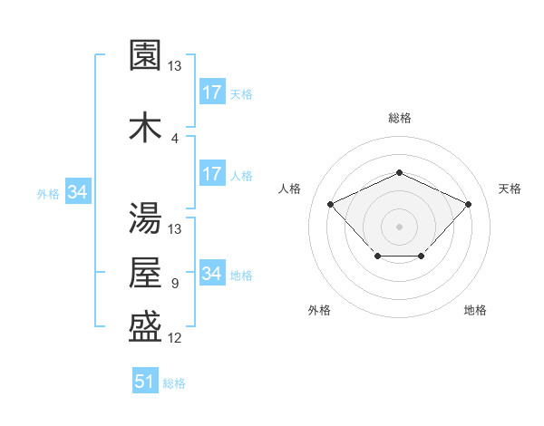 園木 湯屋盛さんを姓名の画数から五運を鑑定
