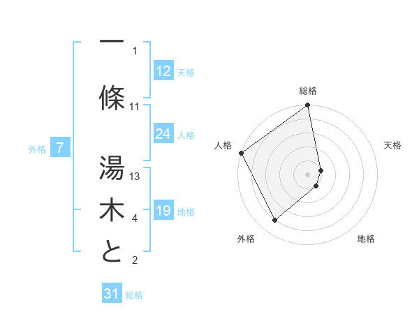 一條 湯木とさんの総格は31画の5点!