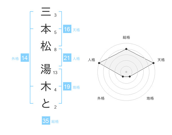 三本松 湯木とさんの総格は35画の4点!
