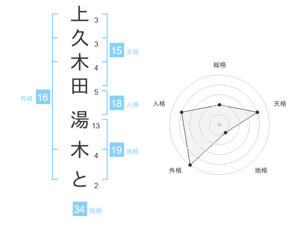 上久木田 湯木とさんの天格は15画の4点!