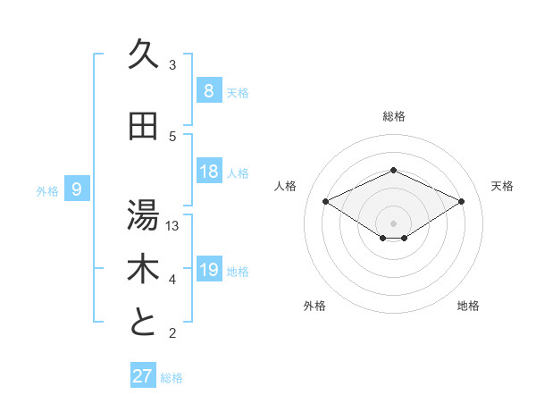 久田 湯木とさんを姓名の画数から五運を鑑定