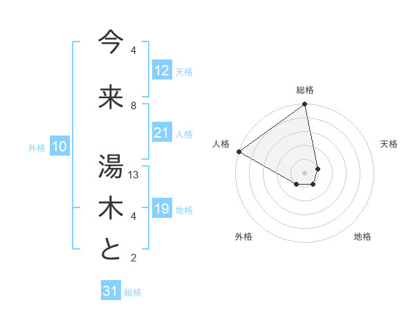 今来 湯木とさんを姓名の画数から五運を鑑定