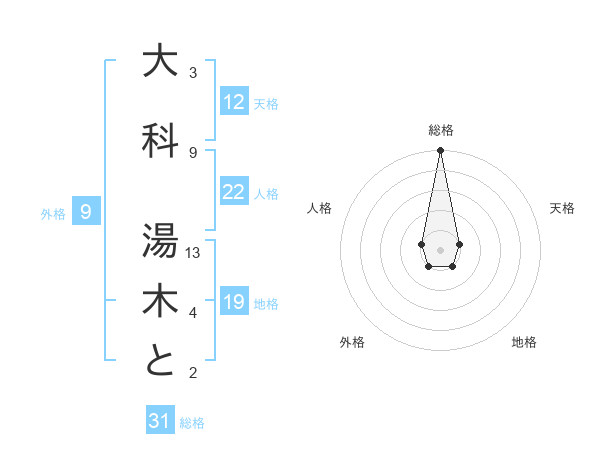 大科 湯木とさんを姓名の画数から五運を鑑定