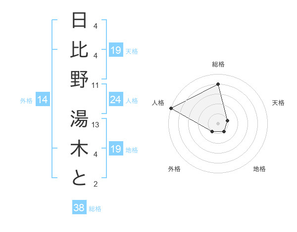 日比野 湯木とさんを姓名の画数から五運を鑑定
