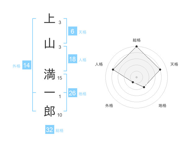 上山 満一郎さんの総格は32画の5点!