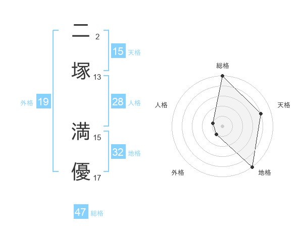 二塚 満優さんの総格は47画の5点!