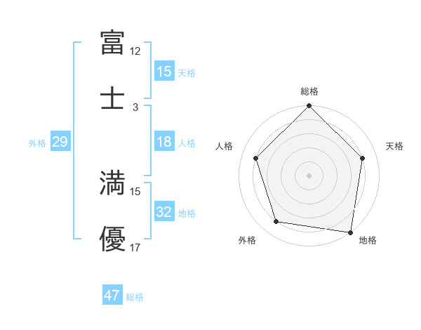 富士 満優さんの総格は47画の5点!