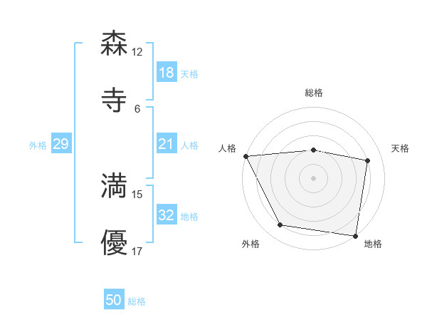 森寺 満優さんの総格は50画の2点!