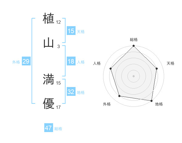植山 満優さんの総格は47画の5点!