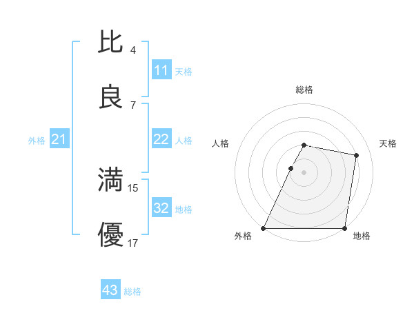 比良 満優さんの総格は43画の2点!