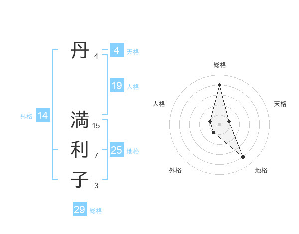 丹 満利子さんの総格は29画の4点!