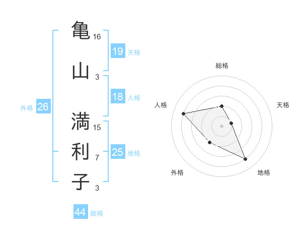 亀山 満利子さんを姓名の画数から五運を鑑定
