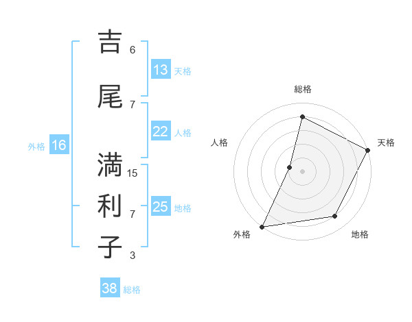 吉尾 満利子さんの総格は38画の4点!