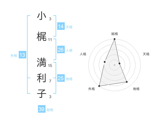 小梶 満利子さんを姓名の画数から五運を鑑定