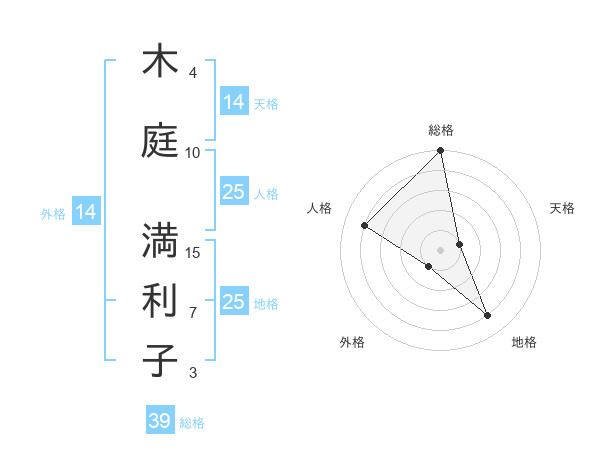 木庭 満利子さんの総格は39画の5点!