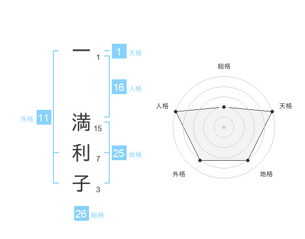 一 満利子さんの地格は25画の4点!