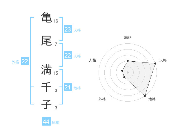 亀尾 満千子さんを姓名の画数から五運を鑑定