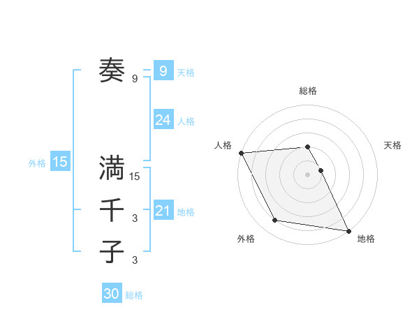 奏 満千子さんの総格は30画の2点!
