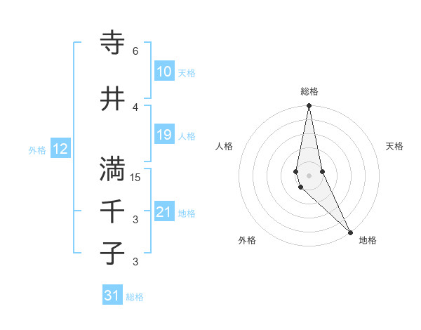 寺井 満千子さんを姓名の画数から五運を鑑定