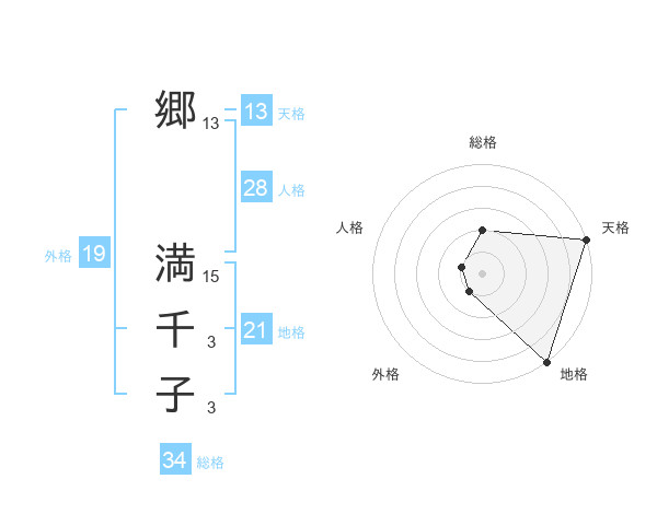 郷 満千子さんの天格は13画の5点!