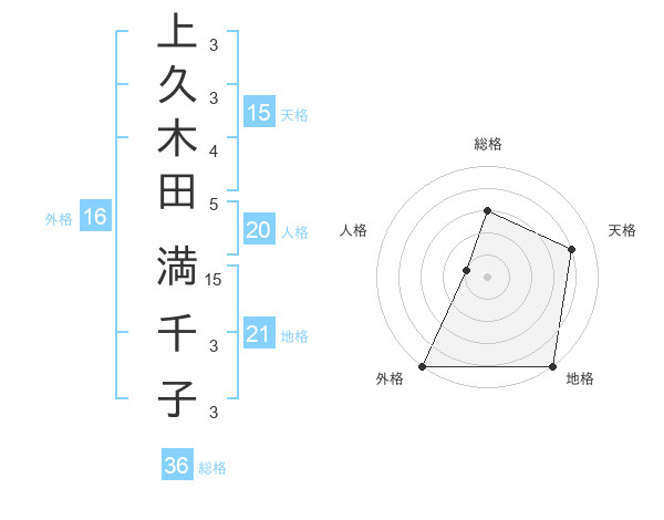 上久木田 満千子さんを姓名の画数から五運を鑑定