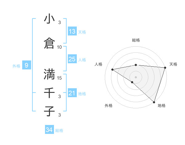 小倉 満千子さんを姓名の画数から五運を鑑定