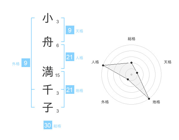 小舟 満千子さんを姓名の画数から五運を鑑定