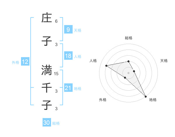 庄子 満千子さんを姓名の画数から五運を鑑定