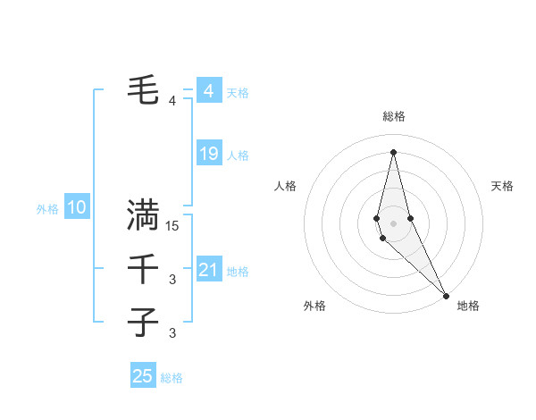 毛 満千子さんの地格は21画の5点!