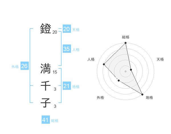 鐙 満千子さんを姓名の画数から五運を鑑定