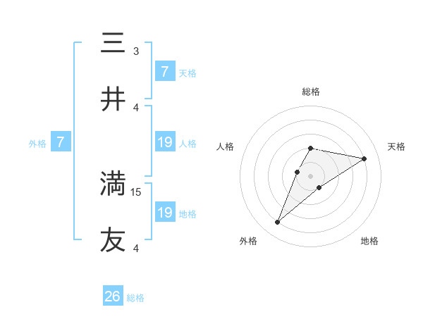 三井 満友さんの総格は26画の2点!