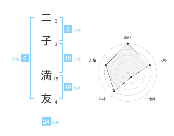 二子 満友さんの天格は5画の4点!