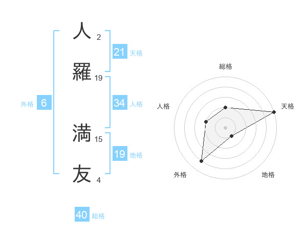 人羅 満友さんの天格は21画の5点!