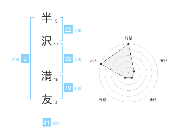 半沢 満友さんの総格は41画の5点!