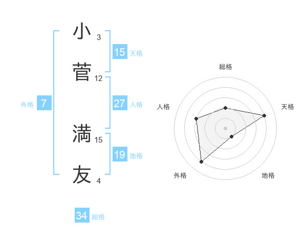 小菅 満友さんの天格は15画の4点!