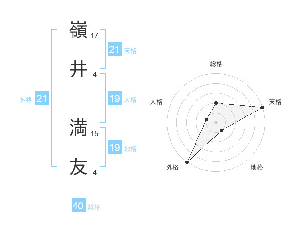 嶺井 満友さんの外格は21画の5点!