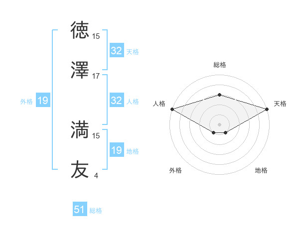 徳澤 満友さんを姓名の画数から五運を鑑定